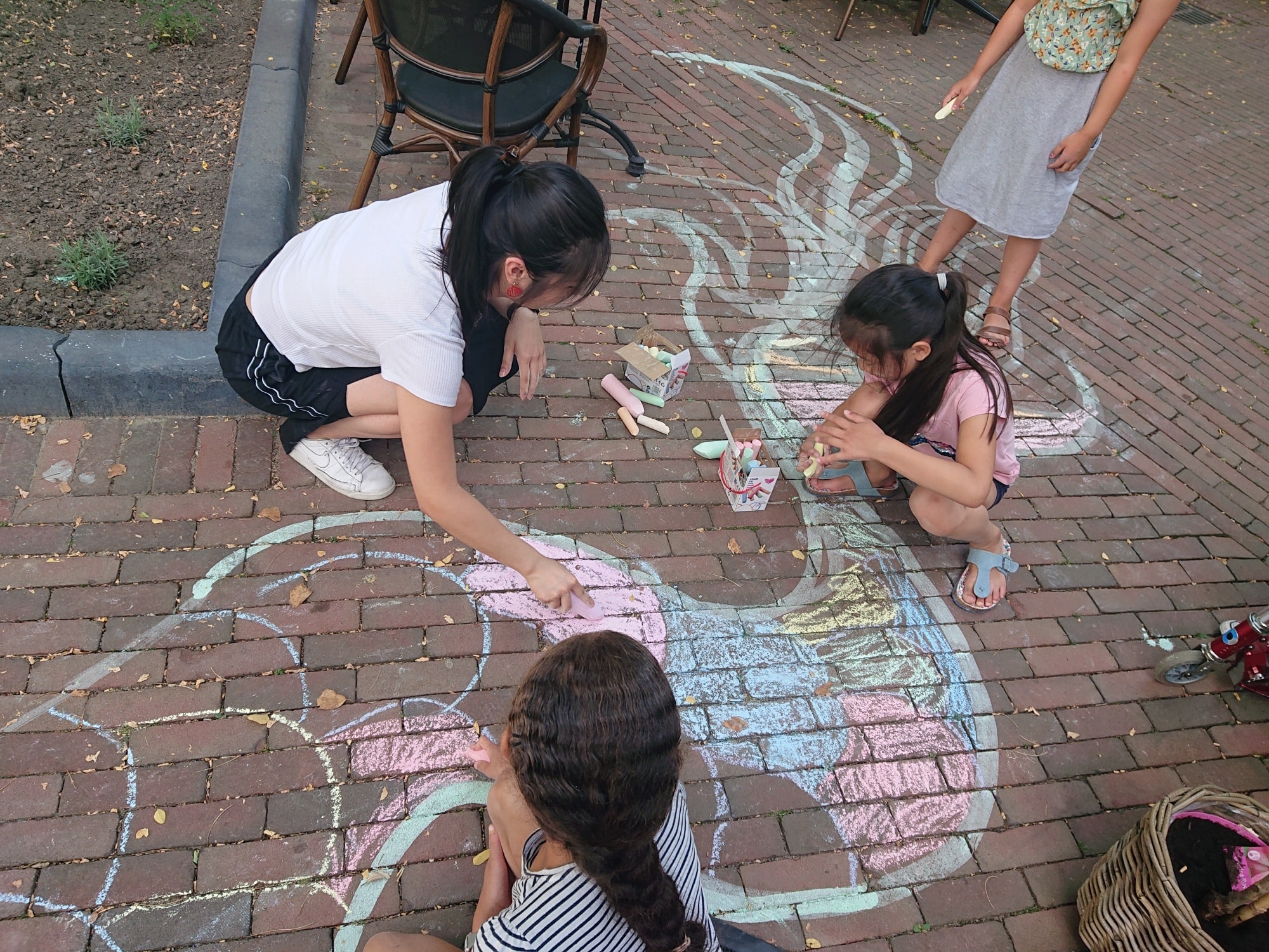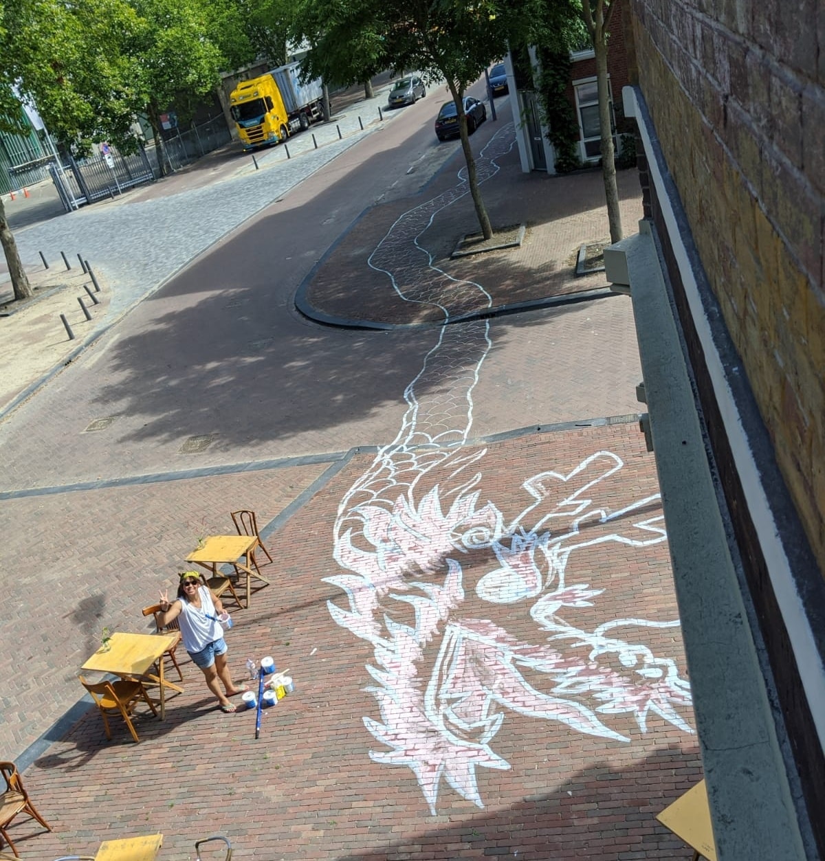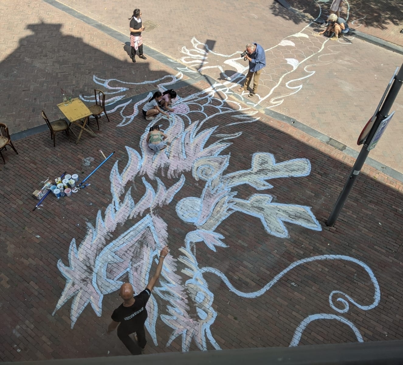 Because of the Asian Summer program at Verhalenhuis Belvédère, Man-Yee has drawn a 150 meter lucky dragon with colored chalk. All children were welcome to color and decorate this dragon during the weekend.